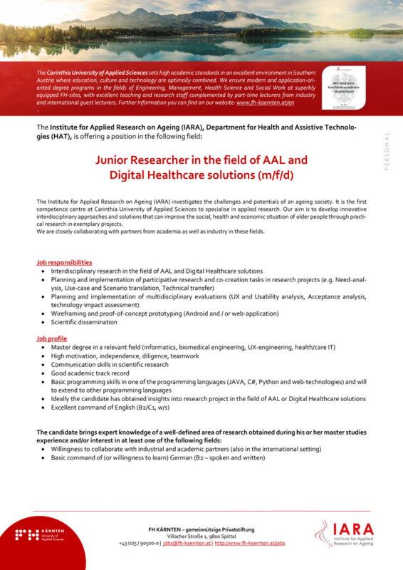 Junior Researcher in the field of AAL and Digital Healthcare Solutions (m/f/d)