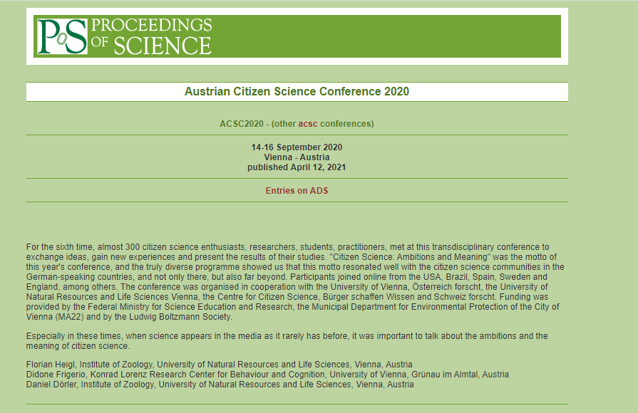 Der Tagungsband der Österreichischen Citizen Science Konferenz, die im September 2020 stattfand, ist nun in Form von Online-Proceedings verfügbar.