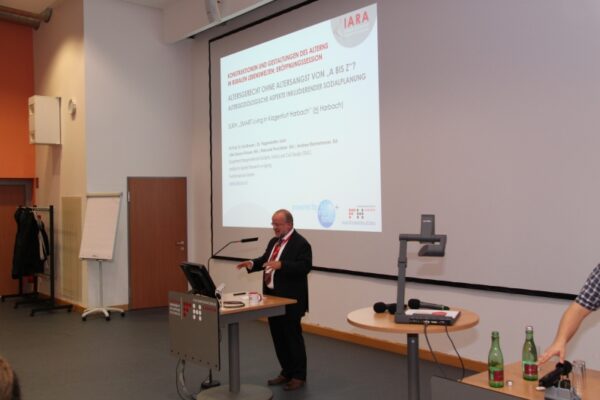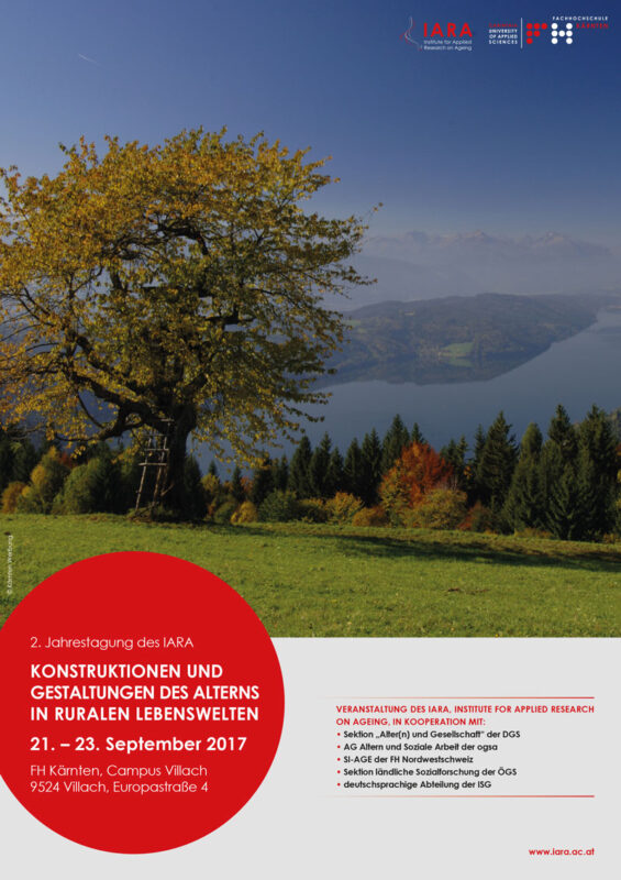 Die 2. Jahrestagung des Alternsforschungszentrums IARA der Fachhochschule Kärnten war eine trinationale Fachtagung mit dem Schwerpunkt Altern in ruralen Lebenswelten. Sie wurde unter Beteiligung von fünf Fachgesellschaften im Themenfeld Gerontologie, Alterssoziologie, Soziale Arbeit und Landsoziologie kommend aus Österreich, Deutschland und der Schweiz organsiert und fand von 21.-23.09.2017 am FH Kärnten Campus Villach statt.