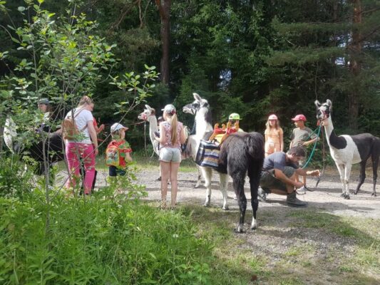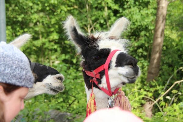 Bei Temperaturen unter Null lernten wir die vier Lamas Lotte, Zottel, Diva und Fritzi kennen und durften sie an die Führstricke nehmen. Dann ging es gemeinsam los durch den Schnee über nahe Wiesen und durch den winterlichen Wald.
