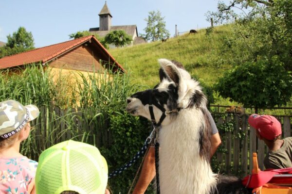 Zum Abschluss konnten wir am Pferdehof Hart warmen Tee genießen, köstliche Muffins, Kuchen und Lebkuchen verspeisen und noch weitere Tiere des Hofes – insbesondere die Pferde im warmen Stall – näher bestaunen. Um ein Haar wären wir sogar bei der Geburt eines kleinen Lämmchens dabei gewesen, es ließ sich jedoch leider noch Zeit. Zu guter Letzt durften kleine, süße Weihnachtsgeschenke für die Kinder und Schmuck für den Weihnachtsbaum im Haus Herrnhilf nicht fehlen – ganz im Lama-Design! Von der Familie Mikl gab es ein Lebkuchen-Lama als Wegzehrung mit auf den Heimweg.