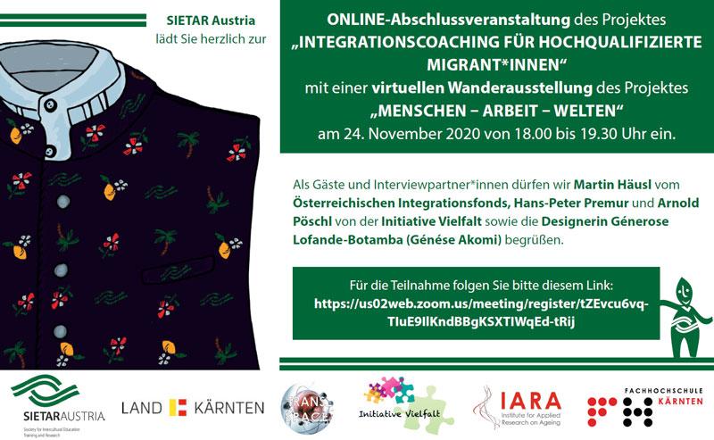 Im Rahmen des Abschlussevents des Projekts „Integrationscoaching für hochqualifizierte Migrant *innen“ veranstalten wir gemeinsam mit der Initiative Vielfalt und anderen Partnern eine virtuelle Wanderausstellung zum Thema „Menschen – Arbeit – Welten“.